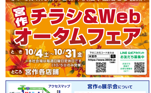 2025年9月8日お知らせ3839.jp チラシ&Web オータムフェア2025日頃より弊社をお引き立て頂きありがとうございます。 残暑お見舞い申し上げます。猛暑が続き本当の秋が待ち遠しい毎日ですが、当社では「チラシ&Web オータムフェア」を開催いたします。 大変お得な期間となっております! その […]