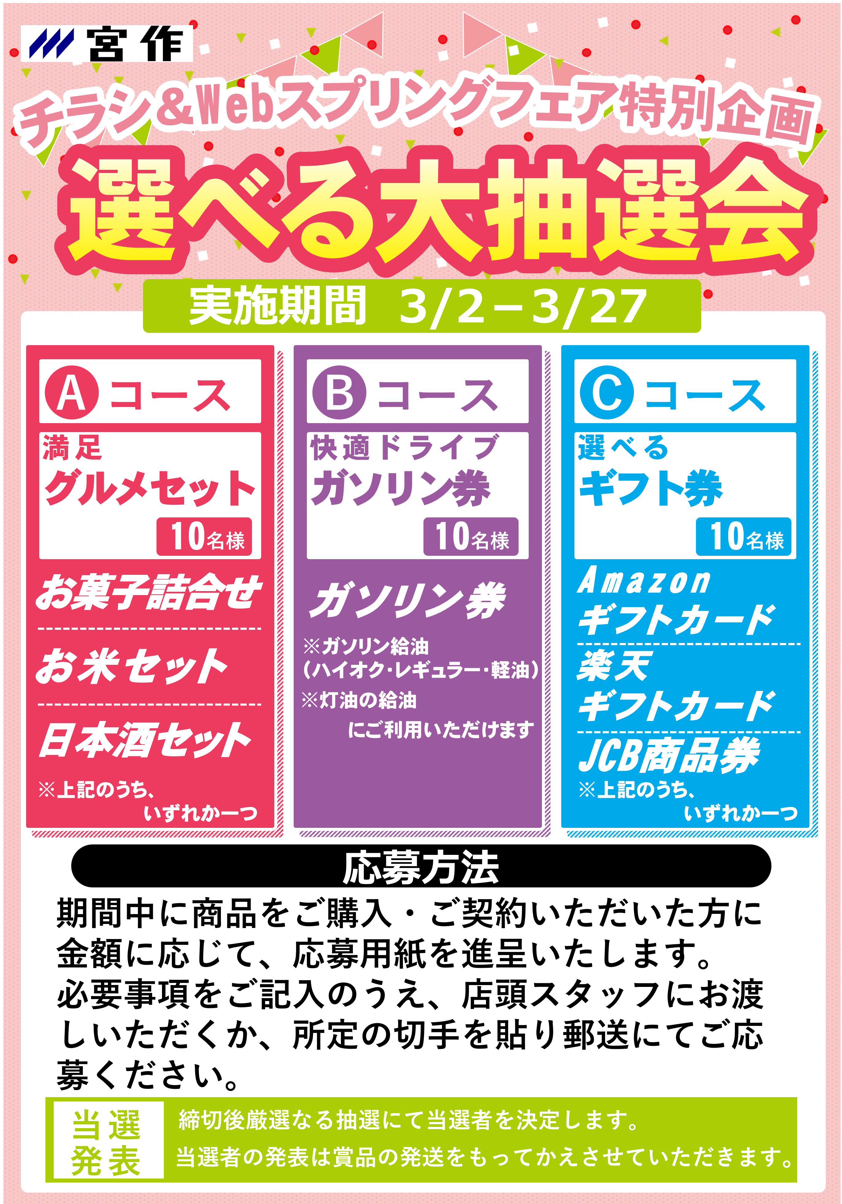 さて、2026年3月2日より開催しました「チラシ&Webスプリングフェア」の特典として「選べる大抽選会」を実施しておりました。